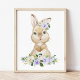 Poster Coelhinho Bonito, Coelho, Flores Roxas, Neutro em