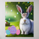 Coelho de coelho da Páscoa bonito com cesto de páscoa e ovos, poster de diversão para todos os amantes da Páscoa