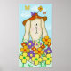 Coelho em seu chapéu country vermelho foi desenhado à mão e depois escaneado para o computador onde foi colorido.