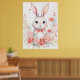 Poster Coelho Pastel com rosas e laço vermelho