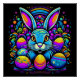 Encantado coelhinho de Páscoa neon-psíquica com ovos de Páscoa.