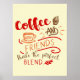 Poster de café para a sua casa, decor de bistro ou arte de restaurante. A design apresenta a citação de café "Café e Amigos fazem a Mistura Perfeita" e ilustrações incluindo uma xícara de café e sobremesa de cupcake. A tipografia decorativa é escrita em cores aconchegantes de vermelho, laranja e marrom. Bela peça para seu negócio ou presente adorável para amantes de café e seus amigos.