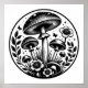Adesivos de cogumelos e flores vintage preto e branco.