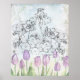 Poster Colagem de Flores de Aquarela de Tulipas Roxas Iri