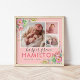 Poster personalizado de decoração infantil personalizado com fotos e texto. Este doce design de menina apresenta uma borda floral colorida de aquarela pastel em torno de um modelo de colagem de fotos com espaço para 3 fotos recém-nascidas quadradas. Adicione abaixo o nome do seu bebê monograma, estatísticas de natalidade ou outro texto personalizado. Use as ferramentas de design para escolher qualquer cor de fundo, editar as fontes de texto e as cores e adicionar mais fotos para criar uma de tipo impressão de arte de manutenção.