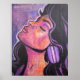 Abrace o seu poder feminino e deixe-o lavar o seu cabelo macio. Esta pintura de colagem mestiça de pop de arte apresenta uma mulher com cabelos pretos do estilo 80s e listras roxas olhando para o céu - tudo enquanto veste um brinco de macarrão e uma maquiagem colorida. Originalmente pintado em papel de jornal com acrílicas e marcadores.
