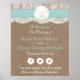 A coleção de casamentos de areia rústica de praia é uma design impressionante que apresenta um adorável fundo de efeito de burlap com romântico com efeito de renda branca vintage, terminada com uma faixa de areia tropical e dólar de turquesa. Estes sinais de boas-vindas podem ser personalizados para a vossa ocasião especial e seriam perfeitos para qualquer casamento rústico, chá de panela, festa de noivado, festa de aniversário e muito, muito mais. Itens de casamento correspondentes podem ser encontrados na coleção.
