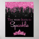 O Poster de Nascer chic para Sparkle apresenta um fundo preto e uma brilha de pingar rosa e preto.
