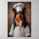 Collie In Chefs Hat Poster, Pet Poster, Collie In Apron Print, Funny Dog Wall Art, Collie Portrait, Dog Kitchen Poster, Animal Poster