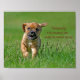 Puggle cachorrando na grama.