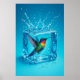 Poster Colorida Dentro de Hummingbird Cube Neon Blue