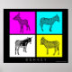 Compre esta poster de burros em cores rosa, azul claro, branco e amarelo.