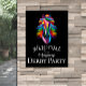 O poster de Boas-vindas preto do partido Derby apresenta uma cabeça de cavalo de corrida colorida brilhante e mane e seus detalhes em letra chic. CORRESPONDENTE a itens na nossa coleção.