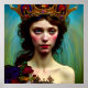 A Poster da Colorful Crowned Solitário apresenta uma imagem de uma princesa criada artificialmente dirigida pelo designer humano dentro de perímetros proprietários para criar um travesseiro único.