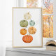 Um belo poster que apresenta abóboras aquarelas em diversas formas e cores. Perfeito por decorar sua casa para o outono.