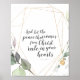 Lembre-se da paz de Cristo com este poster mate com os Colossianos Versos da Bíblia 3:15 em letra de script com fundo de aquarela botânica e sotaques geométricos dourados.