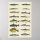Trabalho de arte de várias espécies de peixes em duas colunas