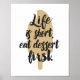 Este poster gráfico moderno apresenta uma silhueta de bar sorvete e o ditado: A vida é curta, coma a sobremesa primeiro.