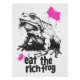 Um exemplo de Comer o Sapo Rico em preto, cinza e rosa