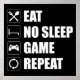 Coma, Sem Dormir, Jogo, Repita. Este acessório engraçado de videogames é um presente de excelente para homens, mulheres, adolescentes e crianças que adoram jogar videos games e jogos de computador. Se você é um geek e adora jogos de console e jogos de computador, este design de meme é para você! Inclui um gráfico de um controlador de vídeo game.