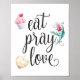 Coma a tipografia do Amor de Reze com cupcake de aquarela rosa, ornamento de flor e coração. Impressão de inspiração de arte na parede da cozinha para a decoração doméstica, presente para ela.