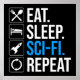 Coma. Durma. Sci-Fi. Repita. Ideia engraçada de amante de ficção científica para um homem, mulher, adolescente ou criança que ama ficção científica, espaço sideral, foguetes e exploração do universo, e é um geek ou nerd científico. Você ama livros de ficção científica, shows de tv de ficção científica ou filmes de ficção científica? Se você é um fã de ficção científica, e tem senso de humor, então esta design é perfeita para você! Excelente para vestir a uma convenção de ficção científica.
