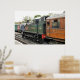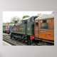 Um trem a vapor bem restaurado e carruagems de uma era passada chegando à estação de trem. Inglaterra Reino Unido