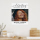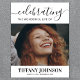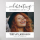 Cartaz memorial moderno com uma grande imagem da pessoa que você está lembrando, um título que diz "comemorando a vida maravilhosa de", seu nome e datas de nascimento e morte.