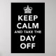 Uma paródia poster do poster de informação pública do governo de 1939, com as palavras "Manter Calmo e Desligar" em texto branco. O raciocínio subjacente a esta design é o de que as pessoas do Reino Unido terão direito a um feriado bancário adicional no Jubileu, que terá lugar na terça-feira, 5 de junho de 2012.