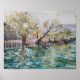Uma aquarela do reflexo de outono das árvores do rio Sado em Setúbal, Portugal. Esta paisagem é valores Comenda.