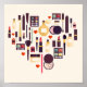 Este design apresenta uma coleção de maquiagens e corações vermelhos bonitos.