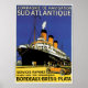 Vintage ocean poster para as viagens transatlânticas ao sul da Compagnie de Navigation Sud-Atlantique ("violações de serviços") entre Bordéus e Brasil e o rio Plate.