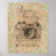 As belas e delicadas flores de bebê respiração em aquarela e a tipografia elegante em letra cursiva irão adicionar um toque puro e alegre ao seu casamento, enquanto o desenho da câmera em estilo vintage irá chamar a atenção dos seus convidados de uma maneira simpática e fofa!