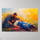 This vivid painting of the Good Samaritan tenderly caring for a wounded man brings the parable to life with warmth and color. A moving reminder of Christ’s call to love our neighbor, perfect for Christian homes, churches, or classrooms.