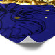 Composição de borboletas luxuosas de safira e joias de ouro em fundo azul texturizado.