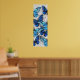 Composição vertical de borboletas de morfo realistas, azuis e brancas sobre fundo texturizado de cinzas. Borboleta azul Morpho.
