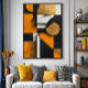 Arte abstrata sofisticada com formas geométricas ousadas! Blocos laranja vibrantes misturados com texturas ricas de ouro e mármore. Design moderno perfeito para decoração de interiores de alta qualidade, capas de revistas e projetos corporativos. Transmite elegância contemporânea e força visual em cada linha precisa!