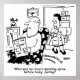 Poster engraçado. Uma mulher retorna de uma viagem de compro e pergunta ao marido, "Qual foi o meu recorde de passar por lá antes de hoje?"