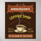 Esta poster retangular de parede com tema de café é perfeita para qualquer um que comanda seu próprio compro de café ou tem um tema de café na decoração da cozinha da sua casa. Feito em castanho, laranja, bege e amarelo, este design de inspiração/espresso apresenta uma xícara em um disco, duas banners de texto personalizados e as palavras "Compro de café / Floresta fresca / Sabor de Excelente" em amarelo. A caneca está a vapor e a faixa de cima tem espirais que imitam a fumaça. Tudo repousa sobre um fundo escuro de grãos de café. Use as modelos para adicionar seu nome facilmente. Você também pode mudar o slogan inferior se quiser, que atualmente lê, "Sem Motivos para Reclamação." Se precisar redimensionar o texto para o ajustado, clique em "Personalizar." Pegue uma xícara de Joe e admire seu poster de café personalizado.