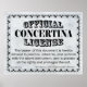 Licença oficial da Concertina. Há muitas atividades que envolvem diversos equipamentos, como a operação de um automóvel, avião, etc., que exigem formação e licenças especializadas. A música fazer é algo que geralmente requer treinamento: lições, prática e ensaios. Não deveria ser exigido aos futuros músicos que recebessem licença para operar o equipamento, ou seja, seu instrumento musical?