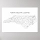 Poster Condados da Carolina do Norte mapeiam com nomes de