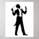 Silhueta branca e preta de um condutor de banda. A forma do homem é adaptada a partir de uma imagem de vintage de um poster do Projeto de Arte Federal WPA de 1939