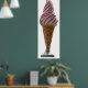 Uma estátua de salão de sorvete vintage em forma de cone de sorvete, espiral de sorvete de serviço mole Em um cone de waffle. Feito em cores vermelho, branco e cromo.