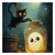 Um gato giro com um fantasma em um vidro