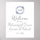 Um simples sinal de boas-vindas floral, roxo e azul, monograma, para janto de ensaio. Sinal moderno de boas-vindas para janto de ensaio editável, personalizável, letra caligráfica manuscrita, simples, elegante.