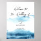 Sinal de Conselhos de Espuma de Casamento em Água Moderna Bem-vindo. Tons azuis elegantes combinados com design minimalista e toques pessoais criam uma atmosfera sofisticada, porém formal.