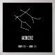 Arte mínima perfeita de baixa manutenção para o seu Gemini favorito. A constelação Gemini, título e intervalo de datas.