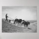 Barragem de reserva em construção utilizando equipamento de construção puxado a cavalo. Condado de Pennington, Dakota do Sul. Foto antiga do fotógrafo Arthur Rothstein, em maio de 1936.