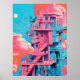 As escadas, elemento proeminente da ilustração, criam um sentido de movimento e progressão, simbolizando a jornada que se poderia percorrer dentro do espaço. Cada passo é cuidadosamente rendido, encorajando a imaginação a percorrer os vários níveis do prédio. A combinação de cores melhora a estética geral, fazer-a uma peça atraente que pode inspirar criatividade e curiosidade.