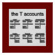 O instrumento de base da contabilidade: O T contabiliza o ativo, o passivo, o rendimento, as despesas, os saques do proprietário e o capital do proprietário.
